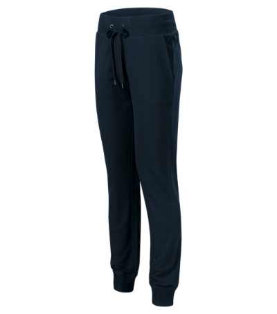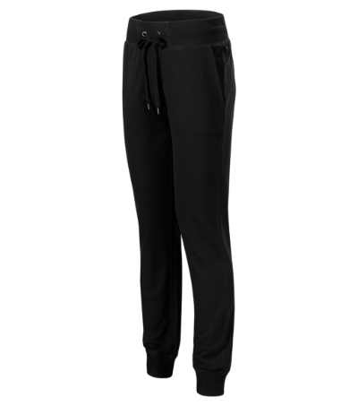 enyhén szűkített szabású szárak, 2:2 kötésű derékrész 5 % elasztánnal, zsinórral állítható, oldalsó ferde zseb, 2:2 kötésű alsó szegély 5 % elasztánnal, díszítő varrás, nem bolyhos belső oldal